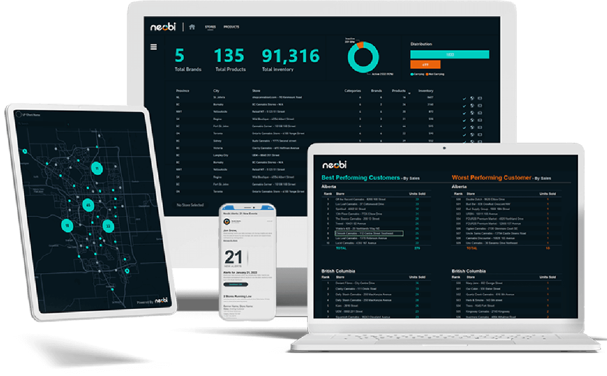 Neobi Technologies provides licensed producers with the inventory and market data, cannabis analytics, and retail sales insights they need to outperform their sales targets – and their competition.
